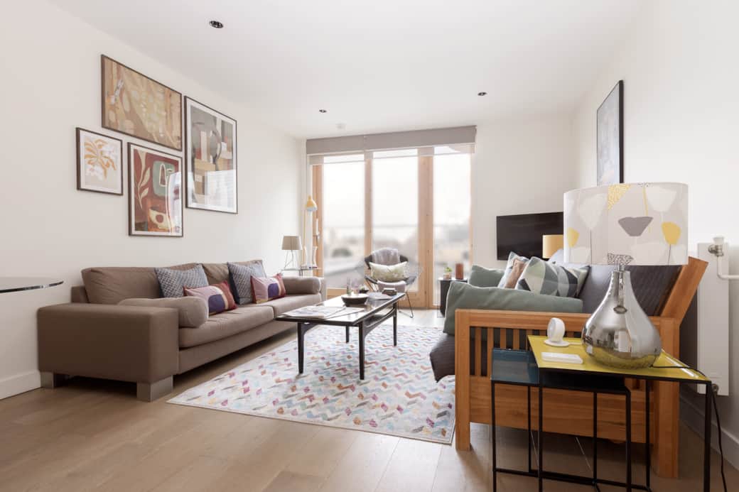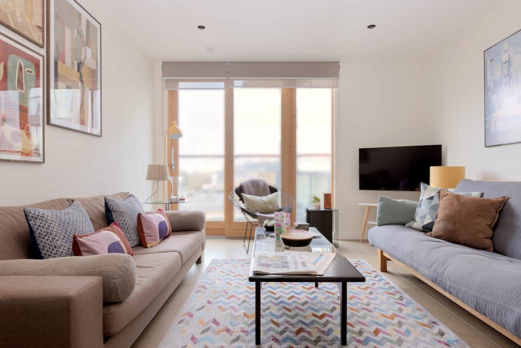 Located in Wapping and overlooking Tobacco Dock, this bright apartment gives you bird's eye views across the city and a comfortable base to call home.